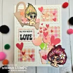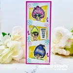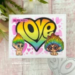 An adorable set of big haired trolls perfect for sending smiles to those you love. Set includes 3 large images, 5 small accent images, 5 large sentiments, and 5 small sentiments.
