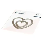2 piece die set designed as an essential for crafting basics. This die set includes two hearts with a dual stitched edge. This leaves a stitched edge on your shaker window, and also adds a stitched edge to your diecut heart. However you plan to use these versatile heart dies, they will always have our signature stitched edge.
