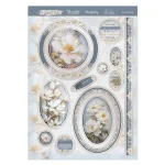 Each image is perfectly complemented with a cool natural colour palette of leafy greens, blush pinks, sky blues and floral purples. Find distressed canvas textures, thick paint strokes, swirls, damasks and floral patterns working alongside the imagery perfectly. All adorned with Hunkydory's signature stunning silver foiled frames, swirls and detailed accenting.