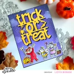 It's a critter fancy dress party with the Costume Critters stamp set! This set covers all the essentials you'll need to create your own crafty Halloween party and 'Trick Or Treating' scene. Features 26 stamps, including a cat-witch, a pumpkin-dog, a bear in devil pyjamas, and a wombat-bee (or maybe he is a bear... or a dog... we're open to votes!). Your party scene essentials are covered with stamps for 2 candy corn pieces, a bowl of candy corn, a bon-bon style candy, a lollipop, 2 party bags, a small cauldron, a signpost reading "Trick Or Treat", a small bat image, a broom, a pitchfork, a spider, a carved pumpkin, a plain pumpkin, and 2 kawaii faces which fit on the pumpkin image. There are 4 sentiments included: "Happy Haunting", "Bring On The Candy", "Hope Your Day Is Spooktacular", and "Eat, Drink And Be Scary". Coordinating dies available sold separately (Costume Critters Dies HFD0440)