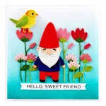 Garden Buddies Etched Dies are part of the Out and About Collection. Who can resist this adorable set of 10 thin metal cutting dies? Assembled, it creates a sweet gnome and a birdie, along with stemmed blooms to accent!
