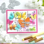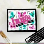 The Postage Collage Butterfly Stencil is designed to coordinate with the Postage Collage die. This three-layer stencil includes overall butterfly silhouettes, detailed layers, and the middle parts and accents. Whether used with the full postage stamp panel or individual trimmed stamps, this stencil brings a fun and creative touch to your projects.
