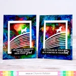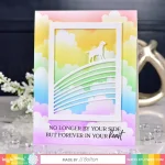 These sets were created to send messages of comfort to friends and family who have lost their beloved pet. The story of the rainbow bridge tells us of a peaceful and happy place where pets wait to be reunited with their owner. When they meet again at the rainbow bridge, they cross together never to be separated again. The Rainbow Bridge stamp set includes words of sympathy and love that can be used with the Rainbow Bridge dies or on their own.